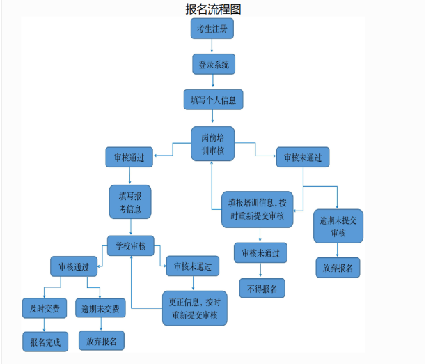 2.报名资格审核结果查询。考生提交报名信息后,一般48小时内反馈审核结果,考生需及时登录报名系统查询。审核通过的考生即可进行网上交费完成报名;审核不通过的考生须于报名资格审核截止时间(4月1日18:00)前更正信息并重新提交报名,直至审核通过进行交费方能完成报名。