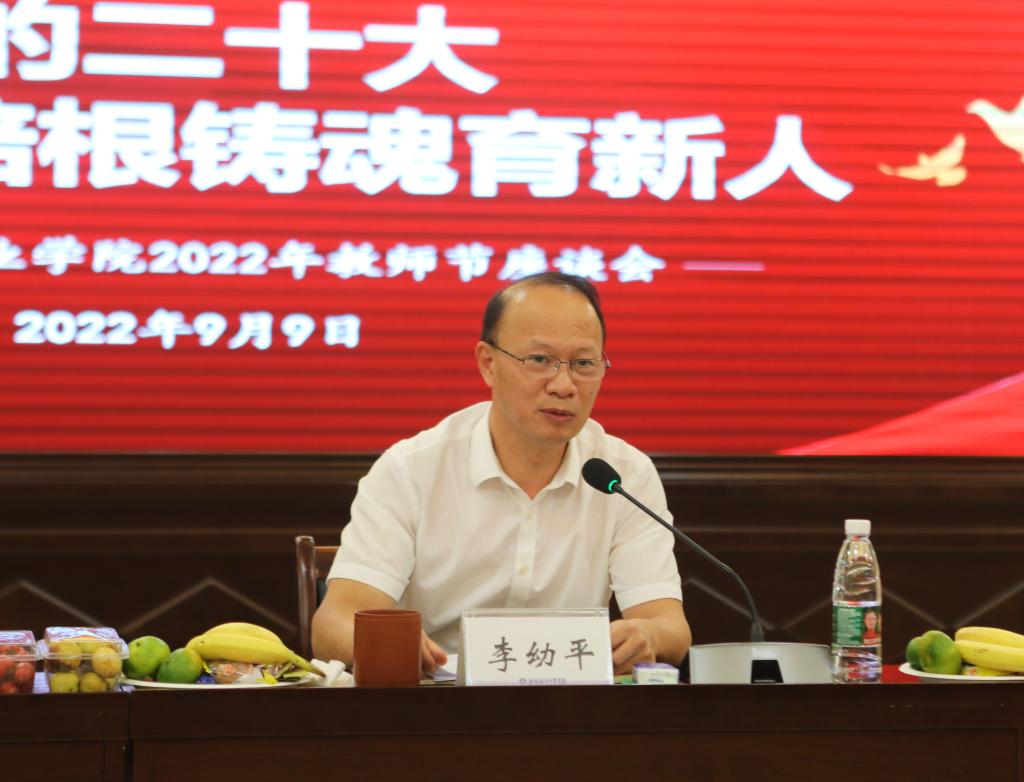 会上,李幼平书记代表学校党委、行政对全体教职员工致以了诚挚的节日问候,并就广大教师普遍关心的子女入学、教职工住宅小区建设等问题进行了积极回应,还向全体教师提出了三点殷切期望:一是要潜心教学教研,不断提升教学能力。要从扎实的知识功底、过硬的教学能力、有效的教学方法、积极的教学态度四个方面不断增强自身的专业能力,迅速成长为专业的行家、课程的专家。二是要强化科研创新,努力增强服务社会的能力。将科研与教学相融合,将潜心问道与服务社会相结合。三是要锤炼高尚师德,做好学生成长成才的领路人。要以学术造诣开启学生智慧,把自己的温暖和情感倾注到每一个学生身上,让每一个学生都有人生出彩的机会。