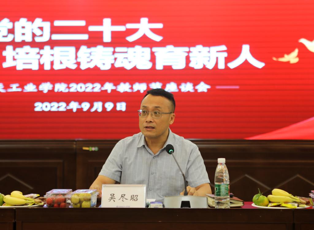 9月9日下午,学校在飞天楼520会议室召开以“迎接党的二十大,培根铸魂育新人”为主题的教师节座谈会。学校党委书记李幼平、校长吴尽昭、党委副书记罗延忠、副校长李智、副校长吴世先等校领导与48位教师代表共聚一堂共祝第38个教师节。座谈会由吴世先副校长主持。